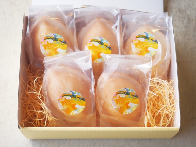 石川県の香り高い「金沢ゆず」をたっぷり使用したゆずケーキをギフトボックスにしました。 ケーキ生地にはゆず皮ペーストを練り込み、ゆずシロップ入りの甘酸っぱいグレーズで包んで、「金沢ゆず」の味と香りが楽しめるケーキに仕上げました。 【原材料】 卵(石川県産)、バター、米粉、ビートグラニュー糖、柚子ペースト、生クリーム、アーモンドパウダー、ゆず果汁、粉糖/ベーキングパウダー(アルミフリー)(一部に卵・乳成分・アーモンドを含む) 【賞味期限】製造日から20日(商品に記載) 【保存方法】直射日光を避け常温で保存 【配達方法】普通便 【内容量】5個(個包装) 箱に包装紙と「金沢ゆずケーキ」タグでラッピングした状態でお届けします。
