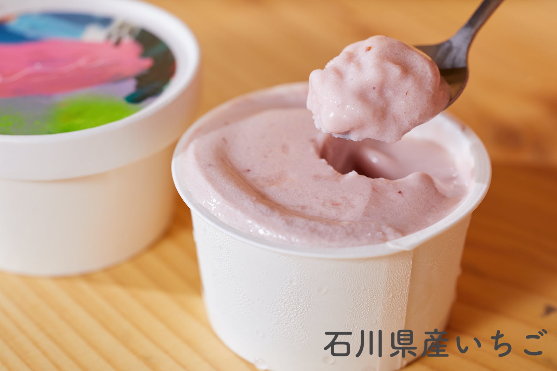 石川県産のイチゴをたっぷり使用した贅沢なジェラート。